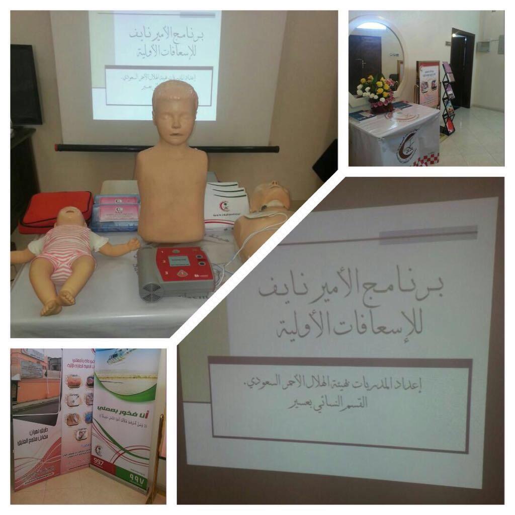 أقامت هيئة الهلال الأحمر السعودي بمنطقة عسير محاضرة توعوية في الإسعافات الأولية ودورات تدريبيه في برنامج الامير نايف في عدد من المدارس بالمنطقه خلال الاسبوع الماضي