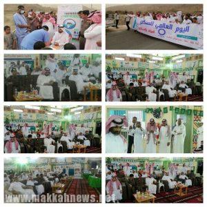أقامت ادارة الإشراف العام على المراكز الصحية بقلوة ممثلة في مركز صحي المضحاه والنجيل ومركز صحي الشعراء وبالتعاون مع مدرسة أحد الابتدائية بالنجيل فعاليات اليوم العالمي للسكري وذلك بحضور محافظ قلوة عبدالله زايد الحربي ورئيس بلدية قلوة المهندس عوض القحطاني ورئيس مركز الشعراء محمد سالم الفديم ومدير مكتب تعليم قلوة الأستاذ محمد سعيد الزهراني ومديري الدوائر الحكومية بقلوة والشعراء وجمع كبير من أهالي النجيل والمضحاه ولقط والضمو والقرى المجاورة