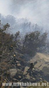 باشر مدني النماص عند الساعة 13:24 من مساء اليوم الثلاثاء ١٤٣٩/٣/٣ بلاغا عن نشوب حريق في اعشاب يابسة واشجار وشجيرات بمنطقة جبلية مع انحدار صخري شديد الوعورة باتجاه اصدار تهامة بقرية ال خثيم بمحافظة النماص وتقدر مساحة الجزء الذي طاله الحريق حوالي 800×300 m تقريبا حيث قامت فرق الدفاع المدني باحتواء واخماد الحريق بواسطة المعدات و وسائل الاطفاء اليدوية لتعذر وصول الاليات للموقع لوعورته الصخرية وطبيعته الجبلية ويعود سبب الحريق الى عبث مجهولين بالموقع فيما لم يصاحبه اي اصابات او اشكاليات ولله الحمد.
