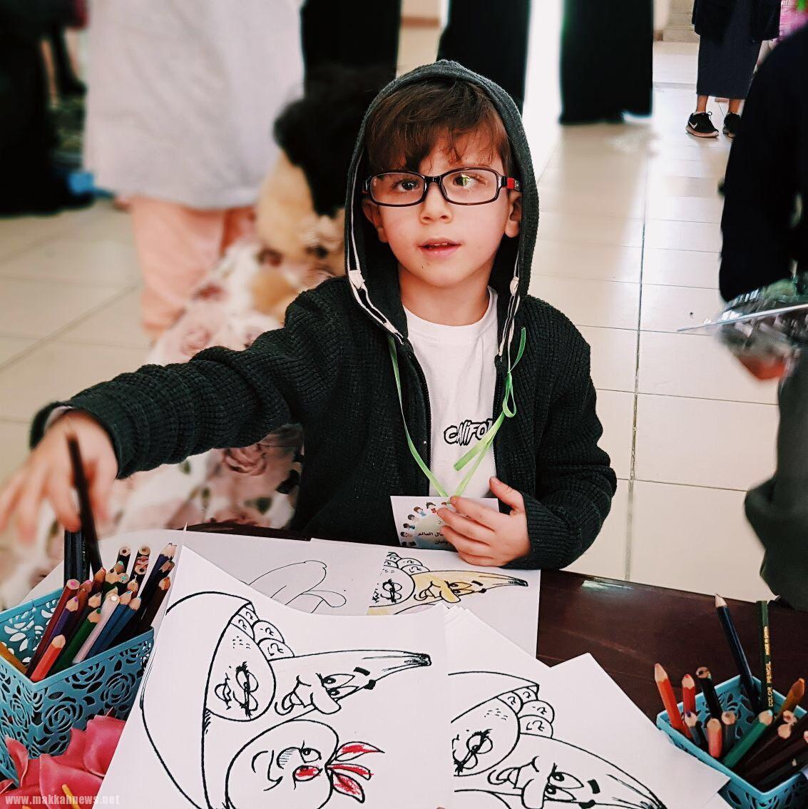 ركن التلوين ، وركن الرسم على وجوه الأطفال بإشراف الطالبتين؛ منى عبدالله، و عبير حربي .