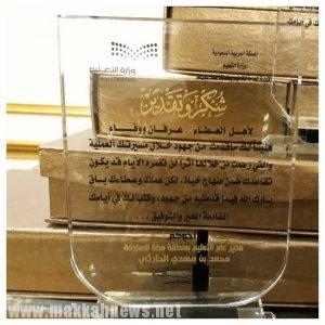 وأضافت بأن تعليم مكة لا يمكنه أن يغفل كل هذه الجهود والعطاءات لكل من عملت فاجتهدت وأخلصت العطاء لتبليغ رسالتها العلمية القيمة ، لهذا جاء احتفالنا تكريما وحفاوة لصانعات الفكر والمستقبل، راجية الله بأن يجعله في ميزان حسناتهن .