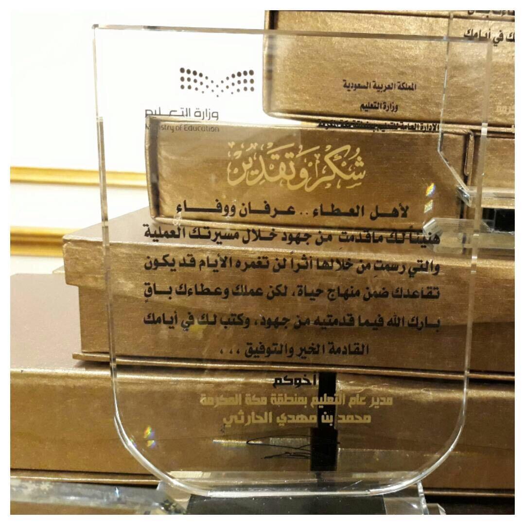 في ليلة عنوانها الوفاء و برعاية المدير العام للتعليم بمنطقة مكة المكرمة الأستاذ محمد بن مهدي الحارثي، احتفت الإدارة العامة للتعليم بمنطقة مكة المكرمة مساء بتكريم المتقاعدات؛ حيث كرّمت مساعدة المدير العام للشؤون التعليمية د. آمنة بنت محمد الغامدي 541 متقاعدة: قائدات ومشرفات ومعلمات وإداريات للعام الدراسي 1437هـ /1438هـ .