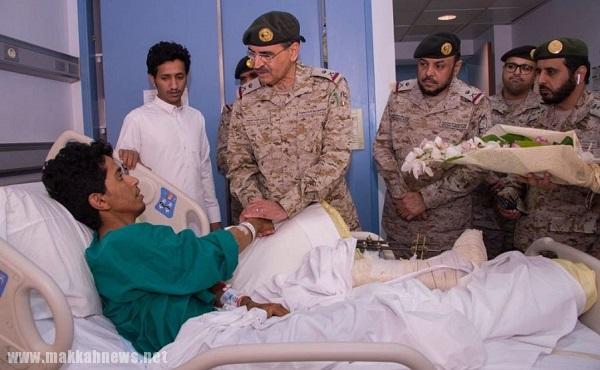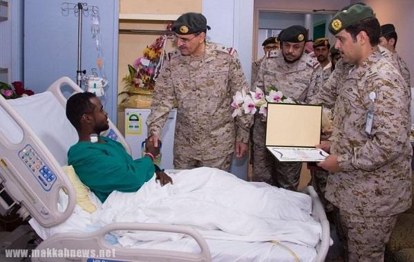 جاء ذلك خلال الزيارة التي قام بها اليوم للمصابين من منسوبي القوات المسلحة في عمليتي عاصفة الحزم وإعادة الأمل، وذلك بمدينة الأمير سلطان الطبية العسكرية بالرياض ، حيث نقل لهم تحيات وتقدير القيادة الرشيدة , سائلاً الله عز وجل أن يمن عليهم بالشفاء العاجل والعودة لاستكمال مهامهم في الدفاع عن الوطن وصون مقدساته .