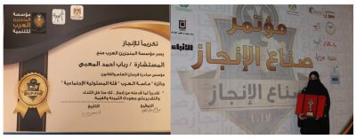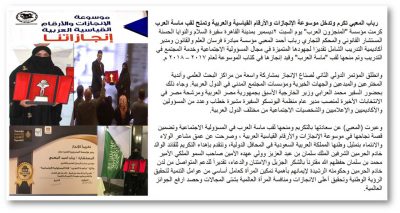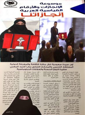 رباب المعبي تكرم وتدخل موسوعة الإنجازات والأرقام القياسية والعربية وتمنح لقب ماسة العرب
