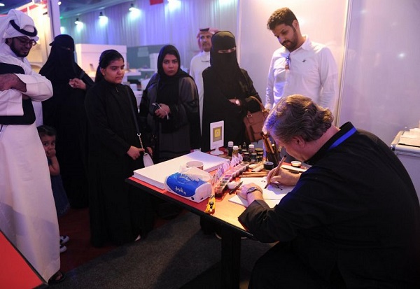 يستقبل ركن الخطاطين بمعرض جدة الدولي للكتاب في نسخته الثالثة “الكتاب حضارة” ٥٠٠ زائر يومياً، متابعين عبر ورش العمل التعليمية جماليات الخط العربي بالتعاون مع الخطاط المعروف ومعلم الخط في الحرم المكي الشريف “إبراهيم العرافي” .