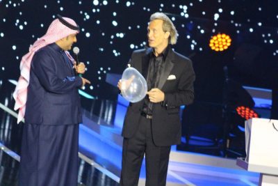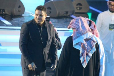ثم تبعه الفنان راشد الماجد مباشرة وسط عاصفه من الترحيب من الحضور في إشارة تكشف حالة الإنسجام بينه وبين جمهوره ، وتجاب معهم على الفور بالأغنية الوطنية الشهيرة ” عاش سلمان ” ثم قدم المنتخب الشهيرة أيضاً ” ياأخضر معاك الله ” ليختم بعهدا بقفلة ولا أروع بالأغنية الأشهر للمنتخب السعودي