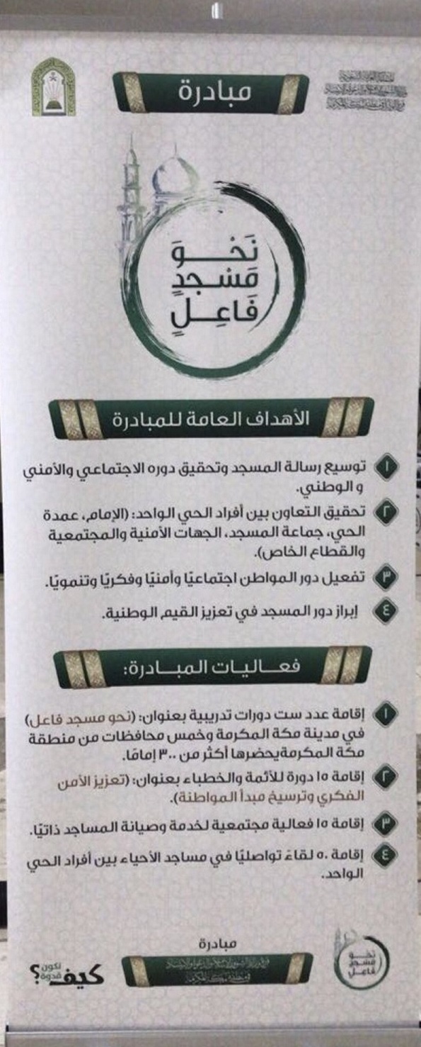 وتتركز فعاليات المبادرة في إقامة ست دورات في محافظات المنطقة يحضرها أكثر من 300 إمام بعنوان “نحو مسجد فاعل” وإقامة 50 لقاءً تواصليًّا في مساجد الأحياء بين أفراد الحي الواحد بهدف تحقيق الدور الاجتماعي للمسجد، وإقامة 15 فعالية مجتمعية ذاتية لخدمة وصيانة المساجد في محافظات المنطقة، كما ستشمل على دورات تدريبية للخطباء والمؤذنين.