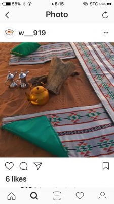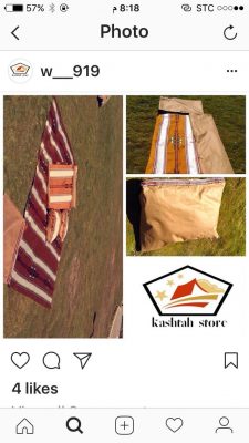 لقبت بالمبدعة في عملي وابتكاراتي بدأت بفرشة بسيطة وتدرجت إلى أن عملت الأقمشة مع الإسفنج في جلسات للخروج بها في البر والمنتزهات والحدائق أو فناء البيت الخارجي وأيضا عملت جلسات خاصة بالأطفال سميتها بكشتة طفلي.