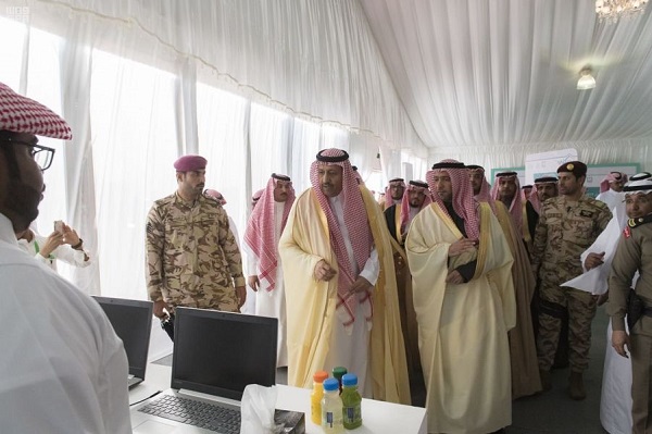 بعد ذلك تجول سموه في أرجاء خيمة التسويق للمنتجات السكنية واطلع على ما تقدمه من خدمات لراغبين في الحصول على الإسكان ، ثم شاهد سموه والحضور عرضاً مرئياً عن المشروع ومراحل تنفيذه وآلية الحصول على الإسكان.