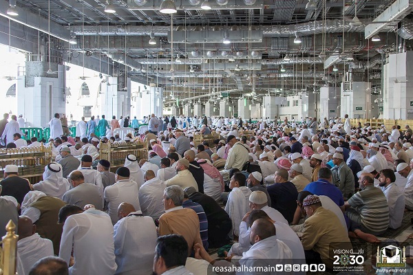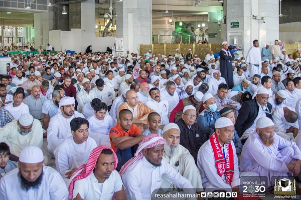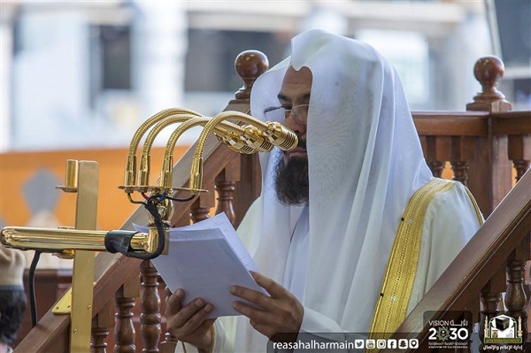 أمّ معالي الرئيس العام لشؤون المسجد الحرام والمسجد النبوي الشيخ الدكتور عبدالرحمن بن عبدالعزيز السديس المصلين في صلاة الجمعة, وخطب فيهم مبتدئاً بحمد الله والصلاة على النبي المصطفى صلى الله عليه وسلم.