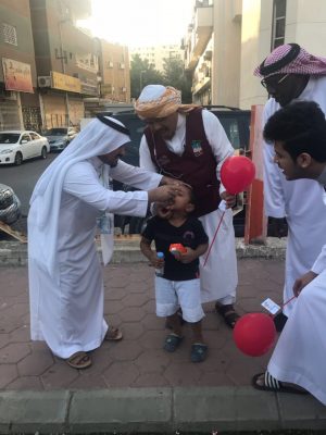 حملة تطعيم أطفال حي النزهة، وتمت مشاركة فريق (إهداء التطوعي) مع مركز الصحة الأولية بالزهراء بتطعيم الأطفال في حدائق الحي،كما تم توزيع العصيرات والبالونات على اﻻطفال