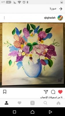 وبعدها بداية ممارسة هوايتي بشكل حر , وكان زوجي من الداعمين لي والمساندين و لولا الله ثم هو ماكنت وصلت لهذا في حياتي , حيث أصر أنني أعرض أعمالي للناس .