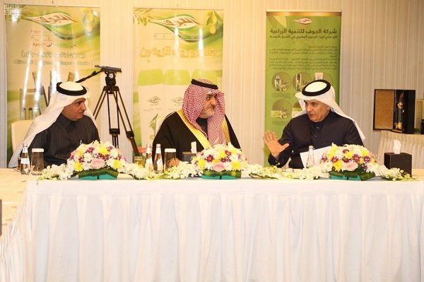 من جهته أوضح العضو المنتدب المدير العام للشركة الجوف الزراعية عبدالعزيز بن محمد الحسين, أن الشركة حققت تطوراً وتنوعاً في مصادر الدخل وتعدد أنشطتها بين الزراعي والتصنيعي والريادة في تبني التوجه الذي انتهجته وزارة البيئة والمياه والزراعة تجاه وقف الهدر في استخدام المياه والمحافظة عليها في خطة التحول الوطني 2020, إذ التزمت الشركة بوقف زراعة الأعلاف والحبوب المستنزفة للمياه والتحول إلى كفاءة الإنتاج الأقل استهلاكاً للمياه واستخدام أحدث التقنيات لتفعيل كفاءة الري بالابتكارات الحديثة.