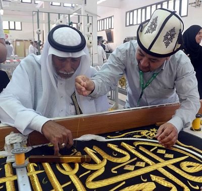 ضيوف برنامج خادم الحرمين يزورون مجمع الملك عبدالعزيز لكسوة الكعبة المشرفة