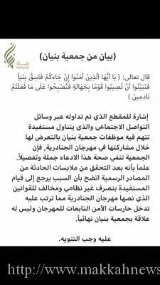 إشارة للمقطع الذي تم تداوله عبر الواتساب و الذي تتهم فيه صاحبة (فود ترك) موظفات جمعية بنيان بالتعرض لها في مهرجان الجنادرية