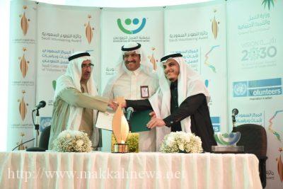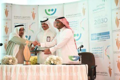وقال المقبل خلال الحفل ان جائزة التطوع السعودية تعتبر من المبادرات الرائدة الى تهدف الى تكريم جهود المتطوعين من شخصيات ومؤسسات وتعزيز التميز في العمل التطوعي والمساهمة في توسيع المشاركة المجتمعية في التنمية والمستدامة .