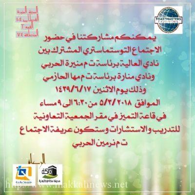 لنادي العالية توستماسترز والذي كان في يوم الاثنين 10/6/1439الموافق28/2/2018الذي كان في الجمعية التعاونية