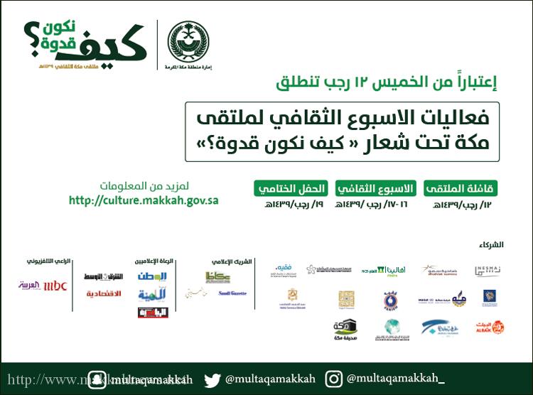 يعلن مستشار خادم الحرمين الشريفين أمير منطقة مكة المكرمة صاحب السمو الملكي الأمير خالد الفيصل, اليوم الأربعاء، أسماء الجهات والأفراد الفائزين بجوائز ملتقى مكة الثقافي في دورته الثانية للعام 1439 هـ.