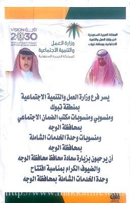 دشن محافظ الوجه فهد بن بندر الخريصي اليوم ، وحدة الخدمات الشاملة النسائية التابعة لفرع وزارة العمل والتنمية الاجتماعية بمنطقة تبوك ، بحضور مدير فرع الوزارة بالمنطقة د. محمد بن عبدالله الحربي ومديرة وحده الخدمات الشاملة الاستاذة آلاء ناصر البديوي وعدد من مديري الإدارات الحكومية.