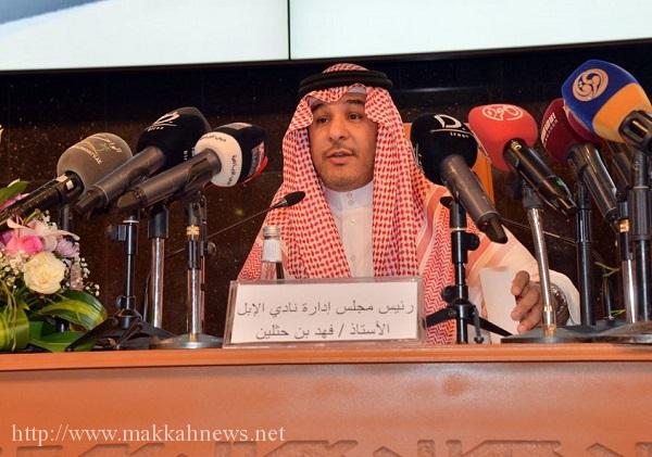 جاء ذلك في كلمة ألقاها الأستاذ فهد بن حثلين في المؤتمر الصحفي الذي عقد في مقر مركز المؤتمرات بوكالة الأنباء السعودية بالرياض، للإعلان عن الهوية الجديدة لنادي الإبل، وذلك بحضور عدد من أصحاب السمو الأمراء، وملاك الإبل، ومحبي رياضة الإبل العريقة، ووسائل الإعلام الصحفية والتلفزيونية .