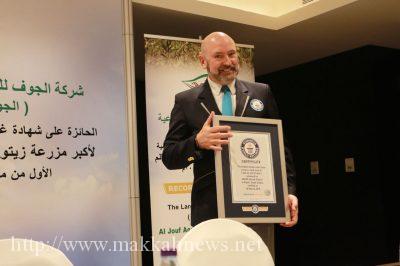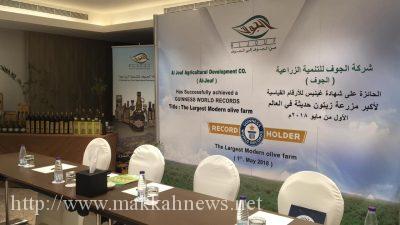 أقامت شركة الجوف للتنمية الزراعية حفلاً في مدينة الرياض بمناسبة حصولها على شهادة “غينيس” للأرقان القياسية لأكبر مزرعة زيتون حديثة قي العالم .