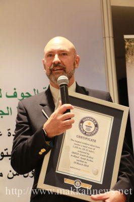 وشهد بعد ذلك تسليم الشهادة من موسوعة غينيس العالمية سلمها السيد/قارين بولارد إلى مدير عام الشركة الأستاذ عبداالعزيز الحسين .