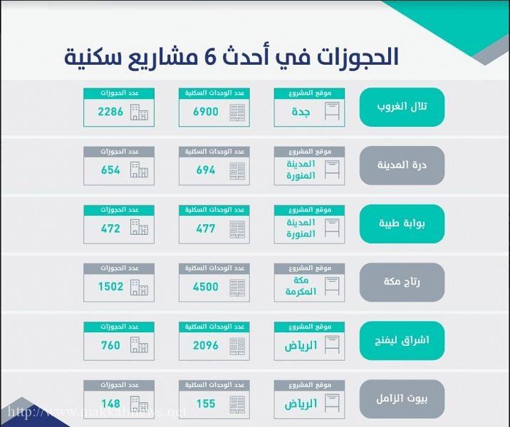 أما في مشروعي الرياض أوضحت الوزارة أنه جرى حجز 148 وحدة سكنية من مشروع “بيوت الزامل” والبالغ عدد وحداته 155، كما تم حجز 760 وحدة سكنية في “إشراق ليفينج” من 2096 وحدة سكنية تم الإعلان عنها.