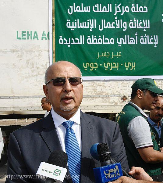 وقال: لقد أعددنا خطة متكاملة بالتنسيق مع المركز لتوزيع هذه المساعدات الإغاثية على أهالي محافظة الحديدة .