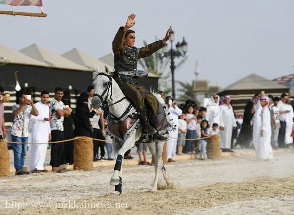 رسم عدد من فرسان القبائل العربية من خلال مسيرتهم في “جادة عكاظ” صورة تؤكد قوة التلاحم والترابط التي تعيشها أرض الحرمين الشريفين واللحمة التي تجمع بين قبائل المملكة وقوة الترابط بين الشعب والقيادة في البلاد.