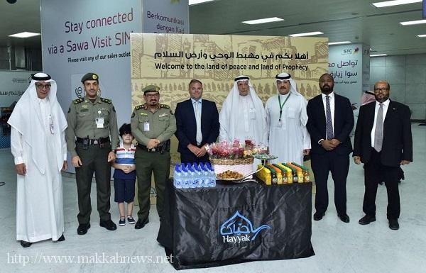وكان في استقبال الحجاج قائد قوات جوازات الحج بمطار الملك عبدالعزيز الدولي بجدة العقيد سليمان بن محمد اليوسف و القنصل العام البريطاني باري بيتش.