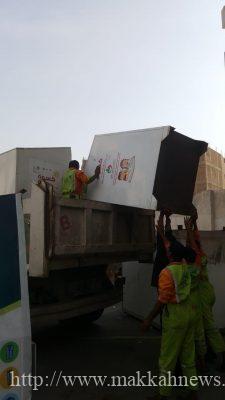 تكثف أمانة العاصمة المقدسة ممثلة بالبلديات الفرعية جهودها في إزالة حاويات جمع الملابس المستعملة و المنتشرة بشكل عشوائي ، بالقرب من المنازل والمدارس والمساجد وأرصفة المشاة والمواقع التي تؤثر على المشهد الحضري والمظهر العام للعاصمة المقدسة .