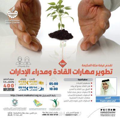 تنظم الغرفة التجارية والصناعية بمكة المكرمة، سلسلة من الدورات التدريبية الجديدة في تطوير مهارات القادة ومدراء الإدارات والجودة الشخصية وجودة الموارد البشرية.