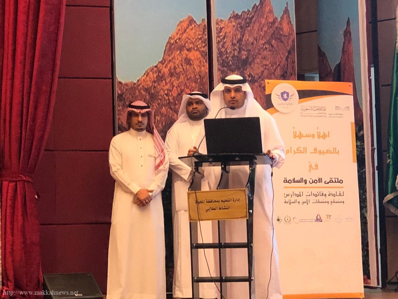 حيث انطلق الملتقى بافتتاحية لمدير إدارة الأمن والسلامة الأستاذ علي يوسف الغامدي رحب فيها بالمشاركين من الجهات المشاركة وقادة وقائدات المدارس ومنسقي ومنسقات الأمن والسلامة وشكر مدير التعليم على دعمه للملتقى ولقادة العمل على اهتمامهم بجوانب الأمن والسلامة.