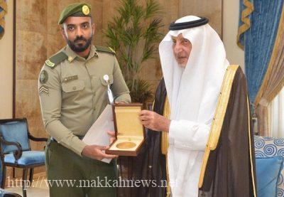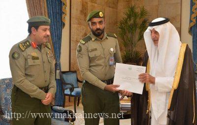 كرّم صاحب السمو الملكي الأمير خالد الفيصل مستشار خادم الحرمين الشريفين أمير منطقة مكة المكرمة في مقر الإمارة بجدة ، العريف بدر بن علي القرني من منسوبي جوازات المنطقة ، نظير تميزه في العمل وضبطه قضية تزوير في وثائق سفر.