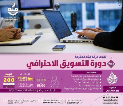 تنظم الغرفة التجارية والصناعية بمكة المكرمة، دروتين في مجالين مختلفين للراغبين في تنمية مهاراتهم في الاختصاصات القضائية وفي التسويق الاحترافي.