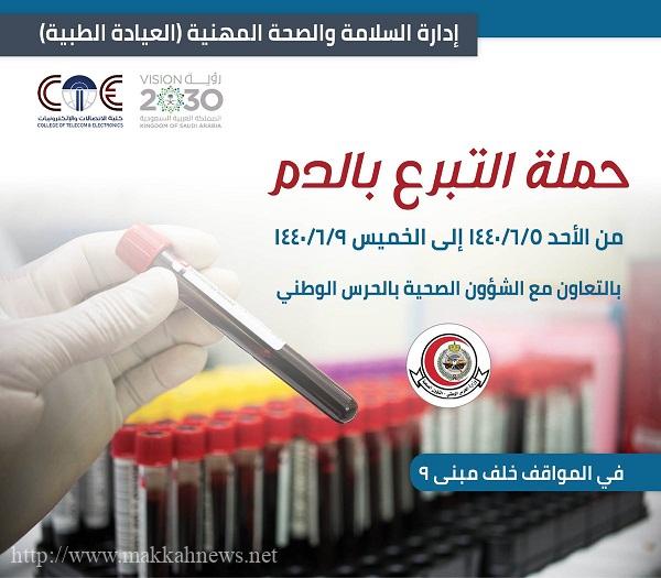 أطلقت كلية الاتصالات والإلكترونيات بمحافظة جدة أمس الأحد، حملة للتبرع بالدم بالتعاون مع الشؤون الصحية بالحرس الوطني بجدة تحت عنوان “بدمنا نشارك في إنقاذ حياة الآخرين”، وتستمر لمدة أسبوع عبر الحافلة المتنقلة والمجهزة طبياً داخل رحاب الكلية.