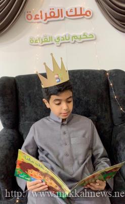 وعلى عرش القراءة، يجلس أحد الأطفال ممن شاركوا بمبادرة “فكرتي ملكي” التي ينظمها مقهى المعرفة التابع لنادي القراءة بجامعة الملك سعود.