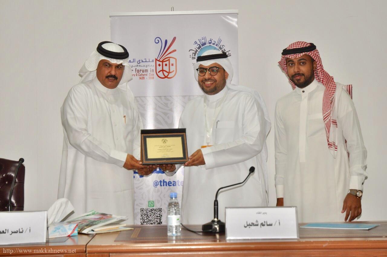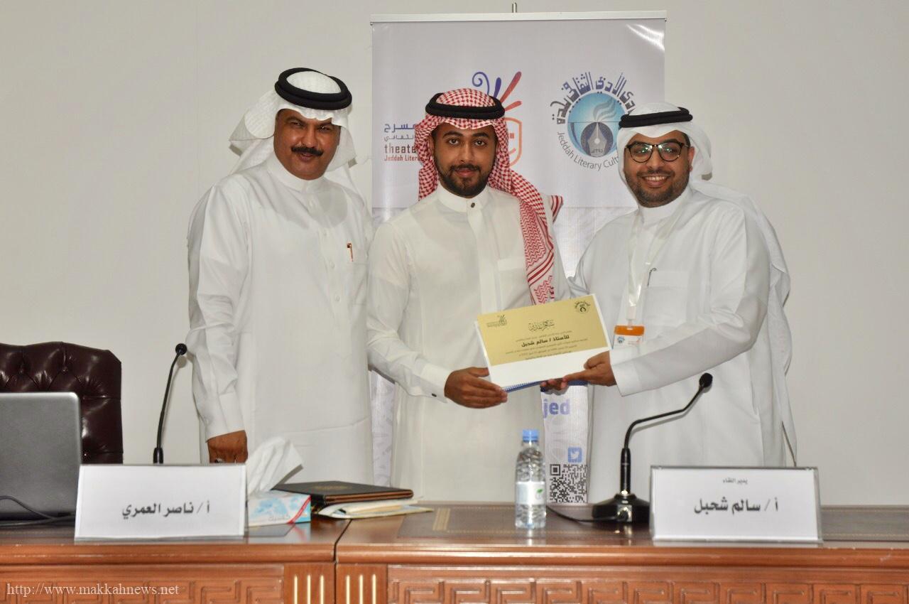 جاءت المحاضرة التي ألقاها الكاتب والمخرج المسرحي ناصر بن محمد العمري احتضنها منتدى المسرح بنادي جدة الأدبي وقدمها المخرج سالم شحبل كمثاقفة حوارية عامرة بالتساؤلات بين الحضور وتتبعت