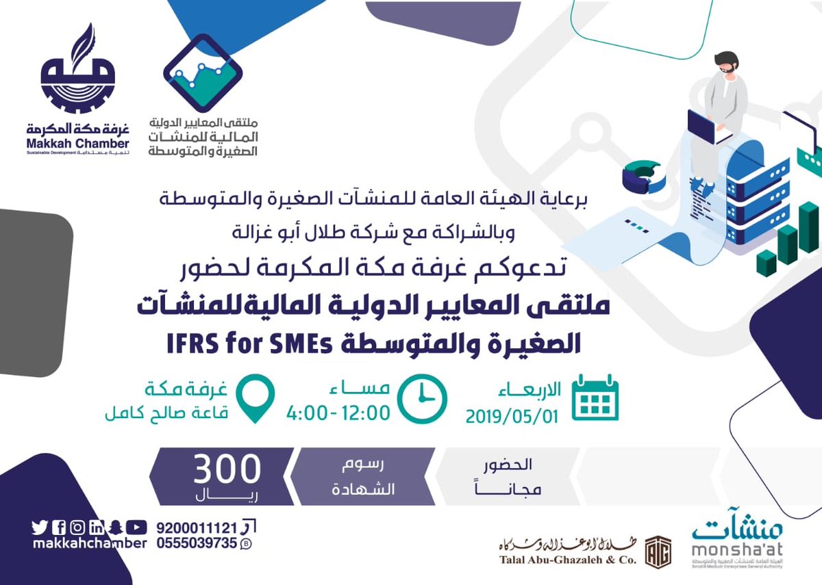 تعقد الغرفة التجارية والصناعية بمكة المكرمة، يوم الأربعاء المقبل، ملتقى المعايير الدولية المالية للمنشآت الصغرة والمتوسطة.
