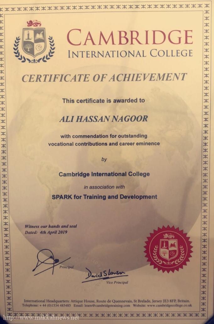 منحت جامعة كامبريدج بالمملكة المتحدة الدكتور علي بن حسن ناقور رئيس مجموعة الناقور العالمية للإستثمار، شهادة الإنجاز نظير مساهماته الإقتصادية والآجتماعية وخدمة المجتمع.