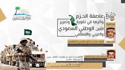 ضمن برنامج نادي الأحساء الأدبي الصيفي (صيفي ثقافي )  وبالتعاون مع منتدى الخبرة   السعودي يستضيف النادي مساء الأربعاء السابع من ذي القعدة الجاري العاشر من شهر يوليو ٢٠١٩م بمقر النادي الخبير العسكري المحلل الاستراتيجي اللواء ركن دكتور شامي الظاهري عضو منتدى الخبرة السعودي في محاضرة عن  عاصفة الحزم وأثرها في تقوية وتعزيز الأمن الوطني السعودي والعربي ، ويديرها الدكتور نافل بن غازي النفيعي الخبير الاستراتيجي الباحث الاجتماعي ، وقد وجه النادي الدعوة عبر موقعه الالكتروني وحساباته على وسائل التواصل الاجتماعي ، يذكر أن هذه المحاضرة تأتي في سياق برنامج النادي الإثرائي الصيفي الذي يستمر حتى نهاية الإجازة الصيفية لهذا العام ١٤٤٠هـ والدعوة عامة للجميع .