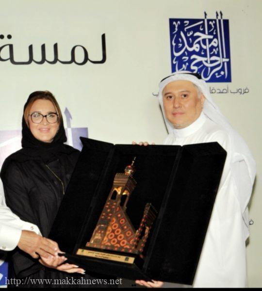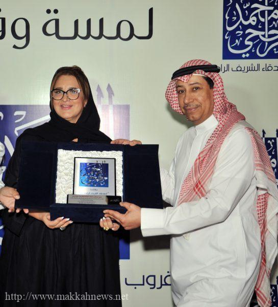 عزيزة جلال تتسلم درع تكريم من جمعية رعاية أيتام جدة نيابة عن الشريف الراجحي