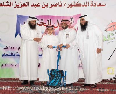 وفي ختام الحفل, سلّم الشلعان دروعاً تذكارية للأعضاء و المشاركين في نادي “مواهب البراعم” الموسمي وكذلك الفائزين بالجوائز للطلاب .