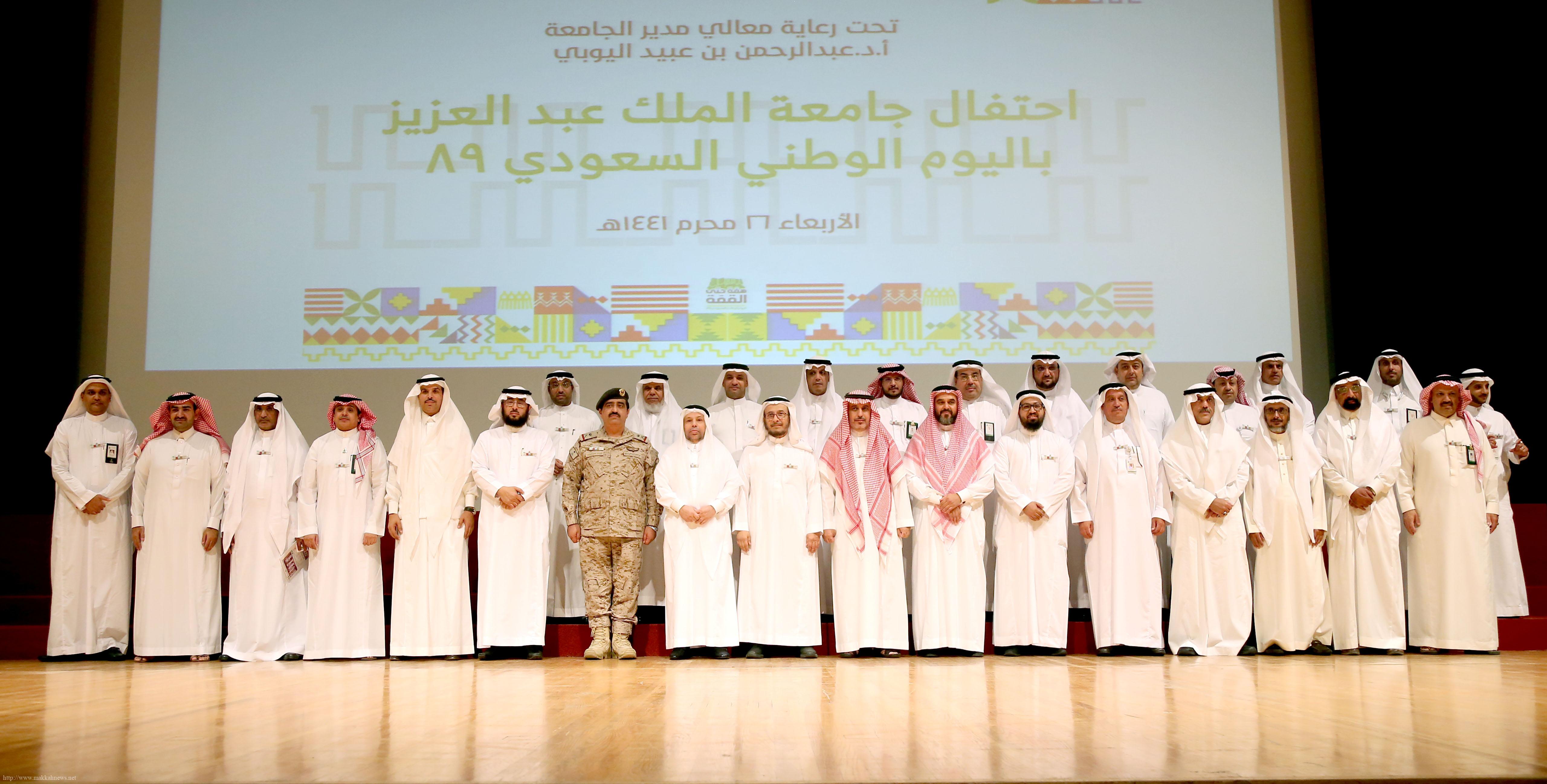 رعى معالي مدير جامعة الملك عبدالعزيز الأستاذ الدكتور عبدالرحمن بن عبيد اليوبي فعاليات احتفال الجامعة باليوم الوطني الـ 89 وتدشين الأنشطة الطلابية للعام الدراسي الجديد تحت شعار “ثقافتنا علم … أخلاقنا قيم”، وذلك صباح يوم الأربعاء 26 / 1 / 1441هـ في مركز الملك فيصل للمؤتمرات.
