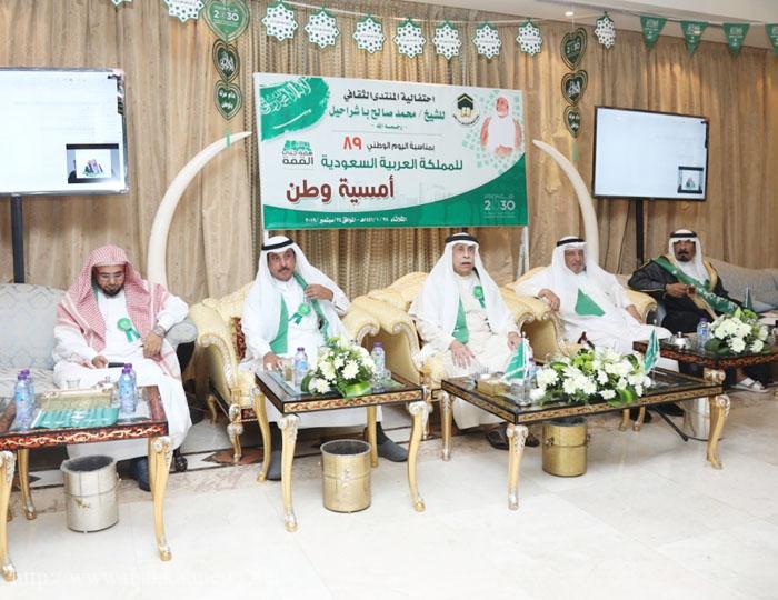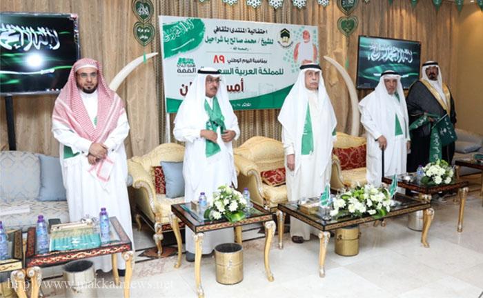 وعن الاحتفال باليوم الوطني داخل المنتدى، تابع: تنساب هذه الليلة شلالات الفرح زهوا وبهاء ونضيء قناديل الافتخار والاعتزاز في هذا المساء الرائع للوطن المشع تماسكا وأمنا وطيبة، وطن اتسم بالقيم السامقة والصفات الراقية.