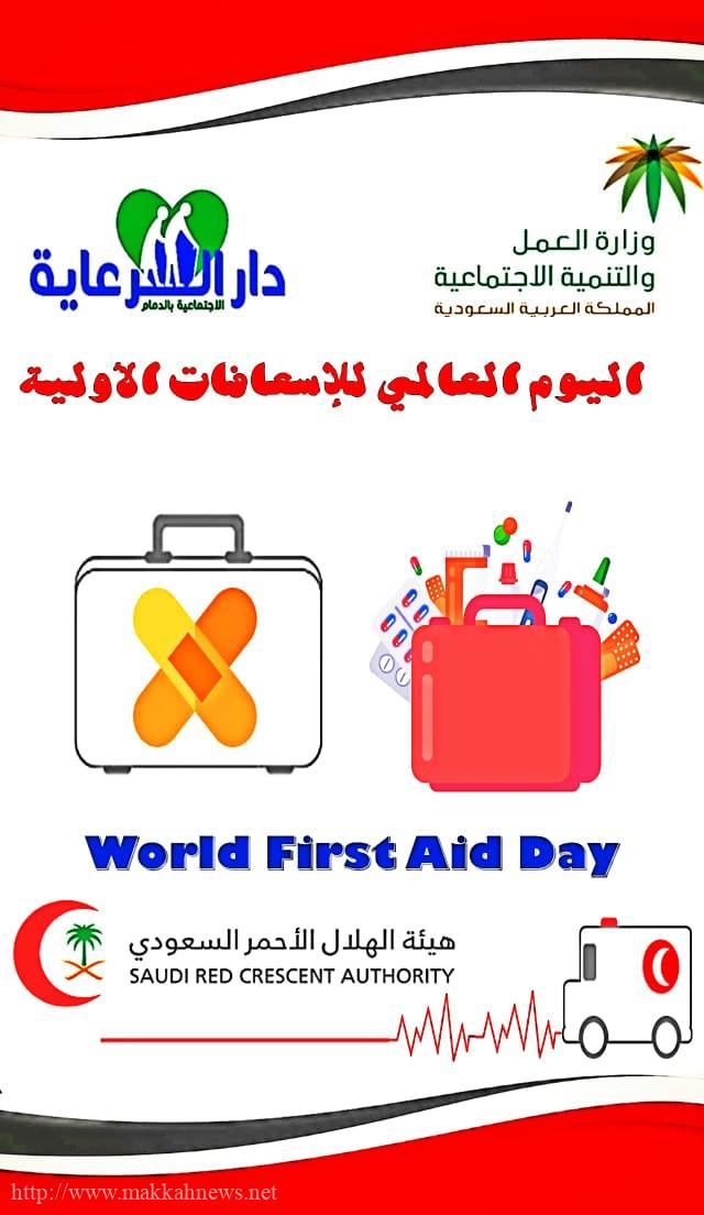 والتوعية بأهم الحوادث بداخل (البيت أو الدار أو بيئة العمل او بالخارج)، وطريقة الإسعافات الأولية لها. وهذا ما يتضمنه الهدف من الاحتفالية بهذا اليوم تحت شعار الإسعافات الأولية لكل شخص، وفي كل مكان)