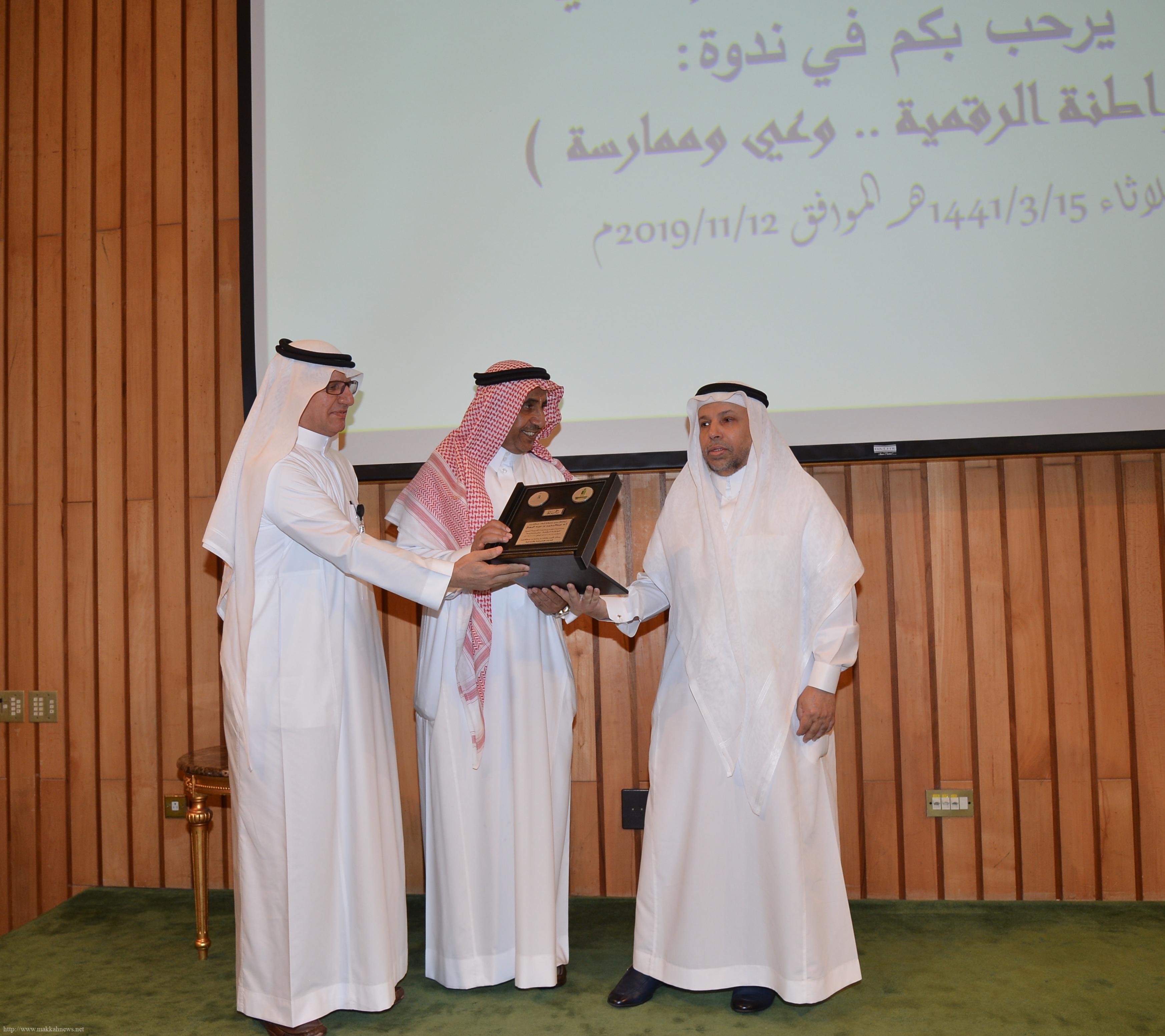 وناقشت الندوة العديد من المحاور منها مفهوم المواطنة والصورة الذهنية للمواطنة الرقمية للدكتور سعد بن عبدالرحمن القرني، ومحور المثقف وصياغة المواطنة الرقمية للدكتور عادل بن خميس الزهراني، ومحور المواطنة الرقمية أبعاد نفسية واجتماعية للدكتورة رجاء طه القحطاني والدكتورة عبير حسين خياط، وتحدث الدكتور محمد بن حميد المزمومي عن البعد القانوني للمواطنة الرقمية، فيما تطرق الطالبان حسان علي الغامدي ودعاء سراج المطرفي في محورهما للحديث عن الشباب وواقع الممارسة للمواطنة الرقمية.