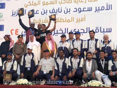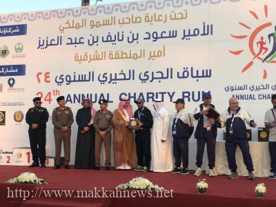 توج محافظ الخبر سليمان بن عبدالرحمن الثنيان، الفائزين والفائزات بسباق الجري الخيري السنوي الـ (24) بالخبر، الذي حمل في نسخته الحالية شعار «بالذوق نرتقي»، حيث تزينت الخبر مساء أمس (السبت) ابتهاجا بالكرنفال الرياضي الخيري السنوي، والذي كان شاهدا على مشاركة أكثر من (8) آلاف متسابق ومتسابقة من مختلف الفئات العمرية قاطعين خمسة كيلومترات هو طول السباق لهذا العام السباق، والذي انطلق في الـ (9) صباحا، وبلغت الجوائز المقدمة لجميع الفائزين في مختلف فئات السباق ما يعادل الـ (180) ألف ريال سعودي، إضافة لعدد من الجوائز النقدية وسيارة.