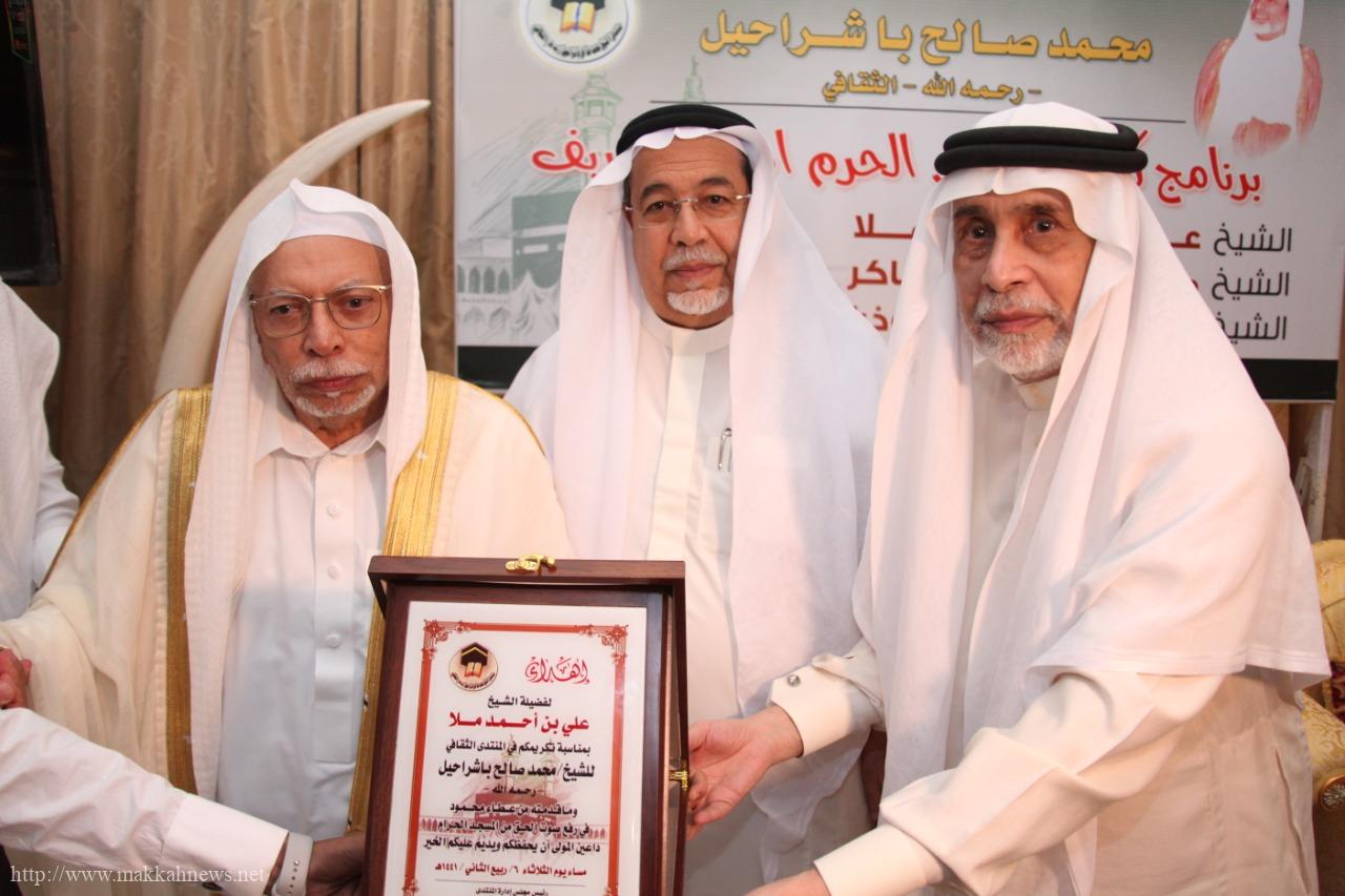 كرّم منتدى الشيخ محمد صالح باشراحيل الثقافي، مؤذني الحرم المكي الشريف، في أمسية حافلة بالحضور من المثقفين والمفكرين والأدباء والوجهاء والأعيان في مكة المكرمة.