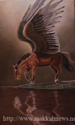 اللّوحه تعبّر عن مايراه الإنسان في بعض الأوقات من ضعف وعجز ووهن في نفسه رغم العظمة التي يعيشها ورغم القوة والكمال التي تم تجسيدها على شكل أجنحة تعبر عن مدى ماوصل إليه من ذروة القوة .
